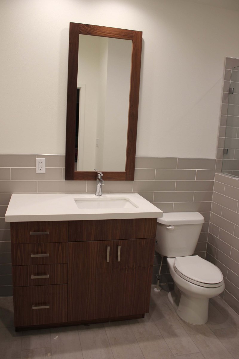 Walnut vanity, quartz and custom mirror Previous Next Published January 12, 2018 at 2304 × 3456 in Before and After Walnut vanity, quartz countertop, rectangular sink, custom mirror and wood-plank tile flooring. Walnut vanity, quartz countertop, rectangular sink, custom mirror and wood-plank tile flooring. Like Loading...